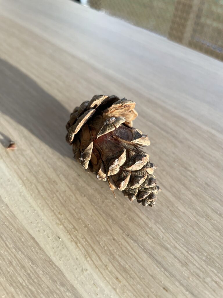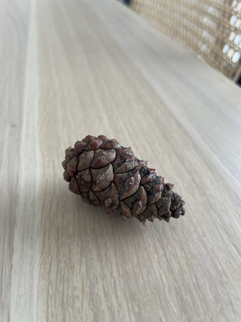 Ostatnio na spacerze znaleźliśmy mnóstwo szyszek. Dzieciaki zaczęły standardowo zadawać pytania. Jednym z nich było: „Dlaczego ta szyszka jest zamknięta?”.